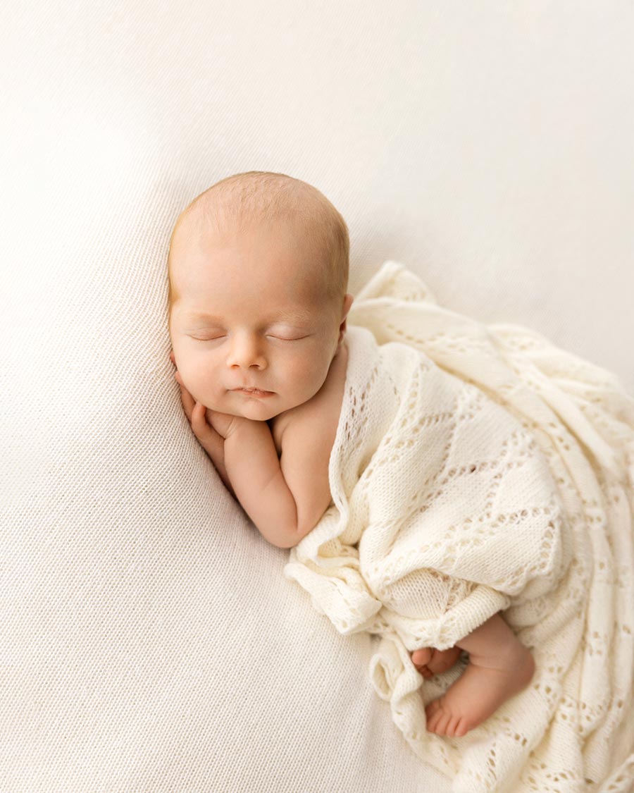 Meticulously knitted in very small batches, the Sam (Ivory) Newborn Photography Wrap offers a luxurious, handcrafted touch to your sessions. The soft, lightweight fabric stretches two ways, making it effortless to achieve a snug and comfortable swaddle. Its delicate pointelle pattern enhances the natural beauty of newborns, adding depth and elegance to every shot.