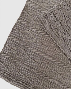 - Textured knitted photoshoot wrap in neutral warm grey colour.